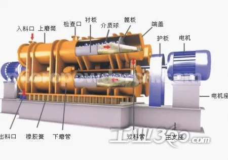 ZM系列振動磨是一種新型的高制粉設(shè)備,有單筒式、雙筒式和三筒式三種結(jié)構(gòu)型式,其中2ZM系列振動磨運用范圍廣泛。