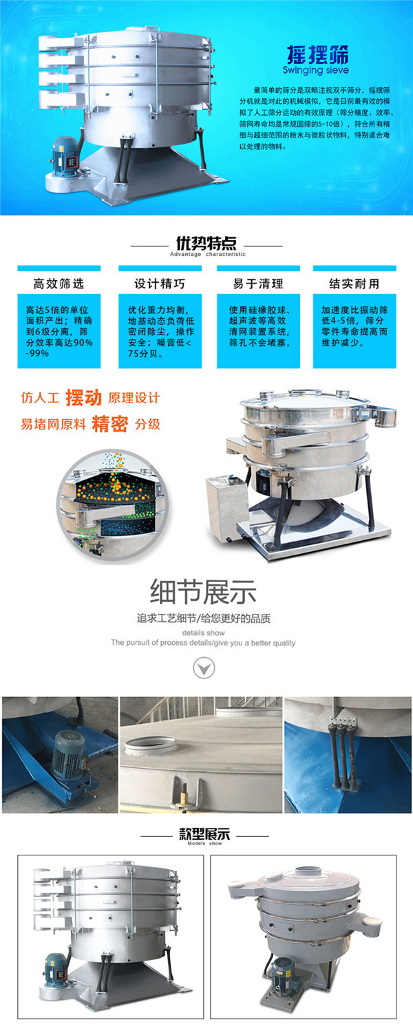 再配合篩分附件可獲得更加理想的篩分效果,適合于圓形狀、圓柱狀、片狀、乃至 于規(guī)則形狀易堵網(wǎng)且需要精細篩分的物料。